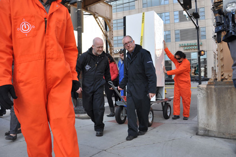Industry of the Ordinary fashion a portrait of a politician from the fruit of the land and transport the likeness across a metropolis.